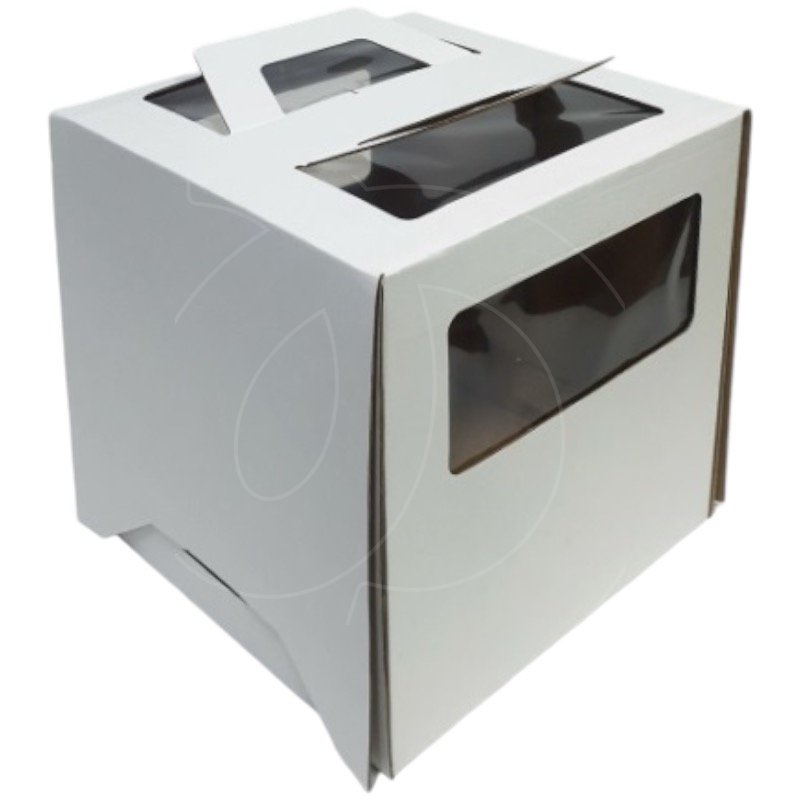 Доставка Коробка для торта с окном и ручками с ламинацией белая 24х24х24 см из магазина в вашем городе: