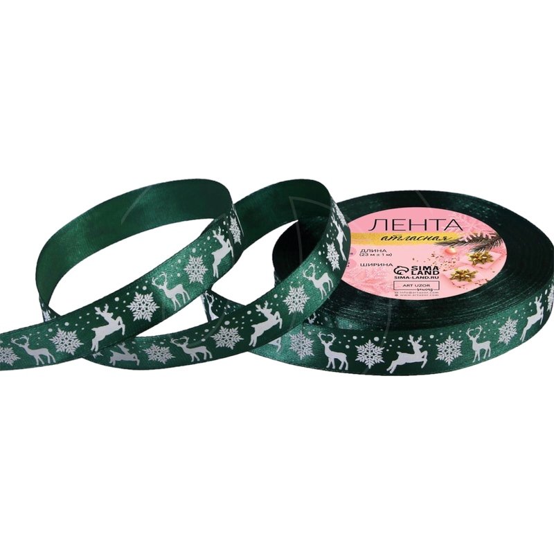 Доставка Лента для декора и упаковки Атласная Зелёная Олени 1,5 см из магазина в вашем городе: