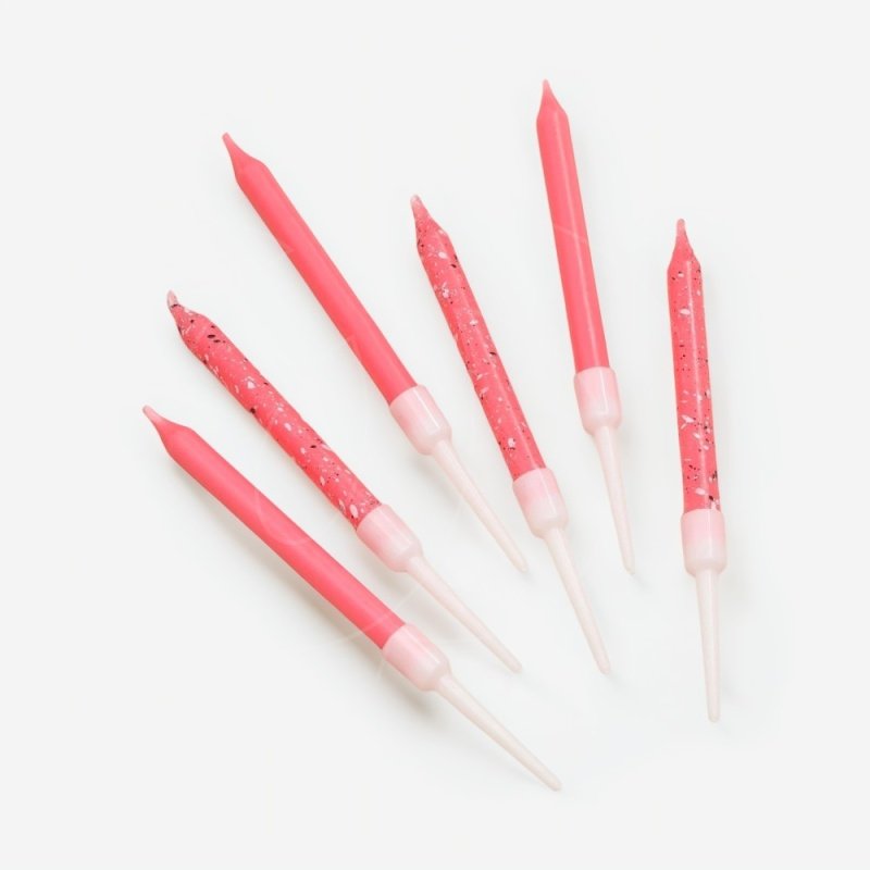 Свечи декоративные "Розовые в крапинку" 9 см 6 шт