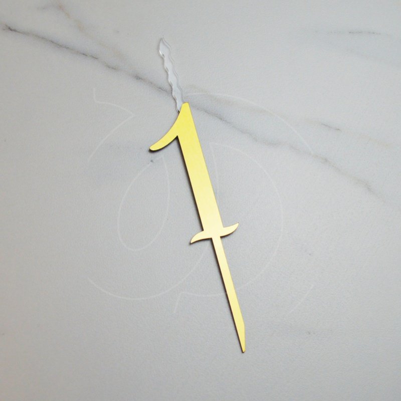 Свеча-топпер декоративная акриловая Цифра "1" Золото