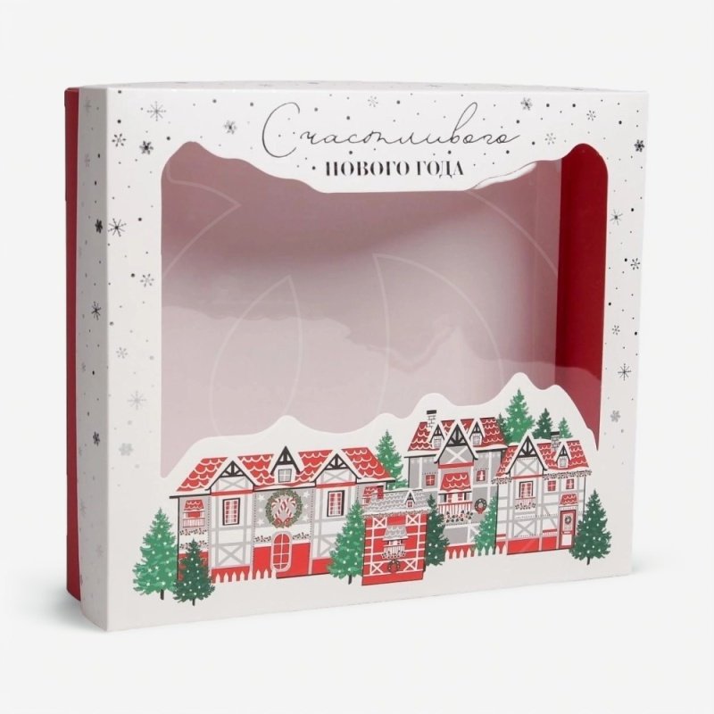 Доставка Коробка для сладостей с окном "Новогодняя" 23,5х20,5х5,5 см из магазина в вашем городе: