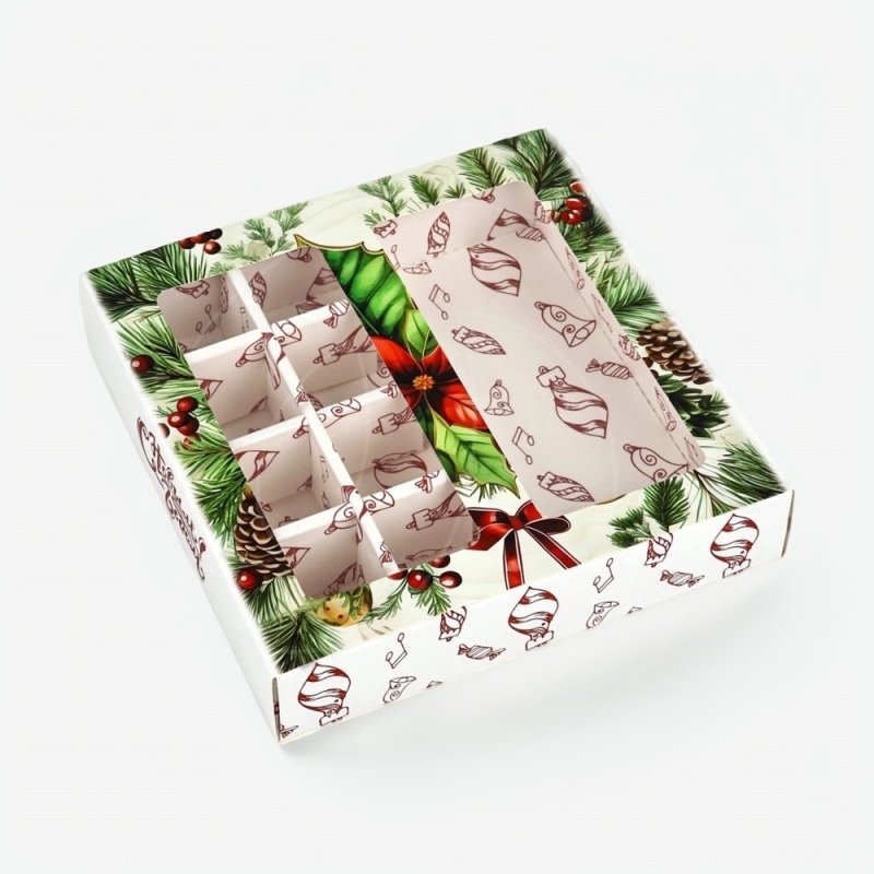 Доставка Коробка на 8 конфет и шоколадную плитку с окном "Новогодние подарки" 17,7х17,8х3,8 см из магазина в вашем городе: