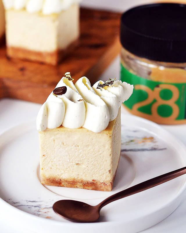 2. Сливочный сыр смешайте с сахаром до однородности, добавьте арахисовую пасту и размешайте. Добавьте яйца по одному и перемешайте.