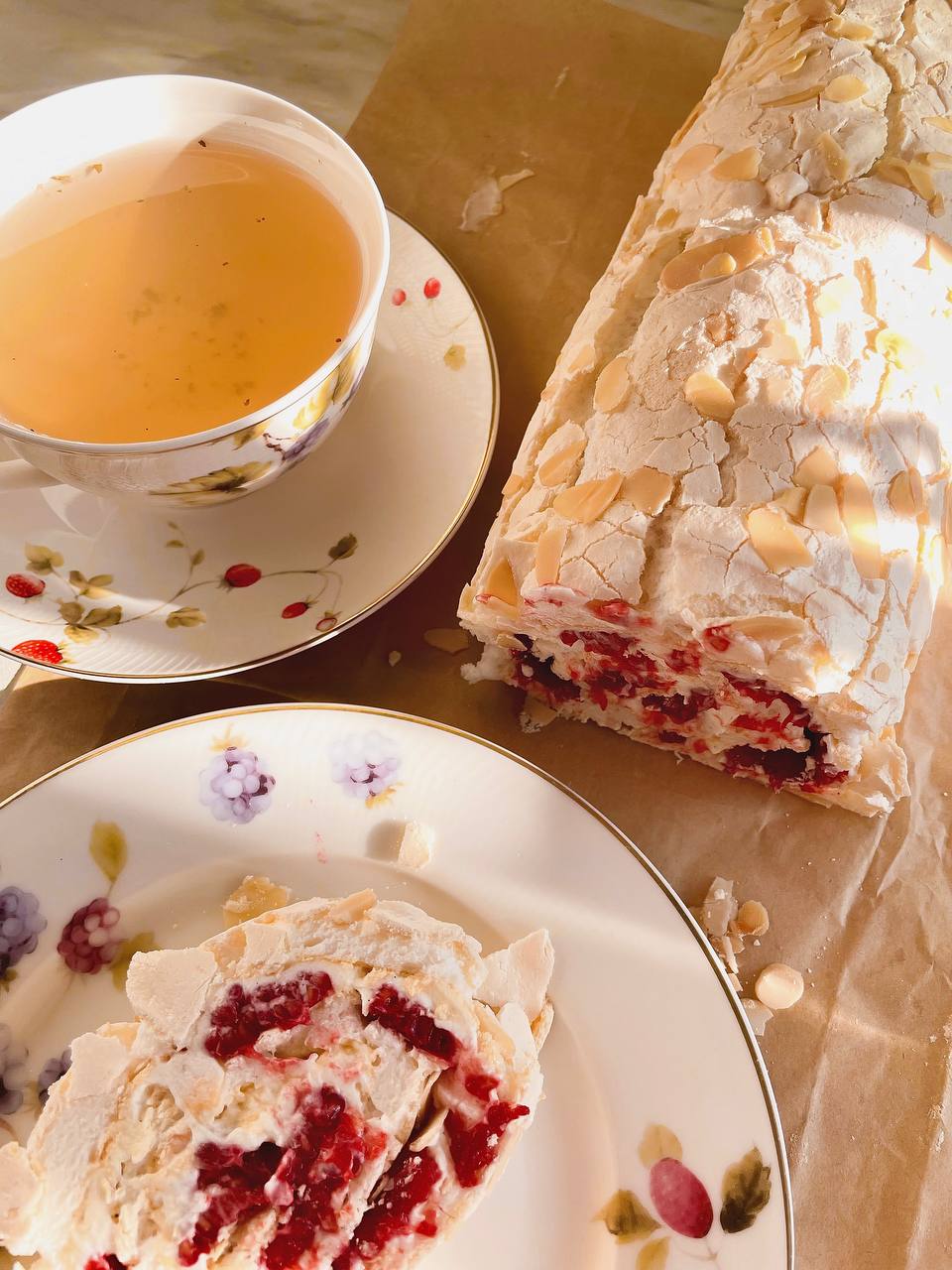 - Распределяем крем по всей поверхности меренги и выкладываем ягоды
