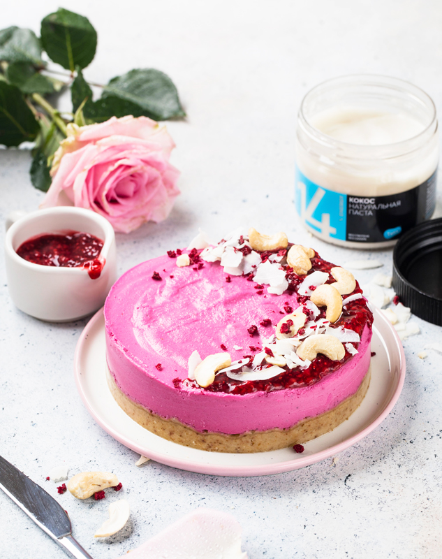 1. Взбейте в блендере или комбайне кешью, постепенно добавляйте кокосовую пасту и 40 мл кокосовых сливок, следом влейте сироп/мёд, сок лимона. Взбейте всё до однородности.