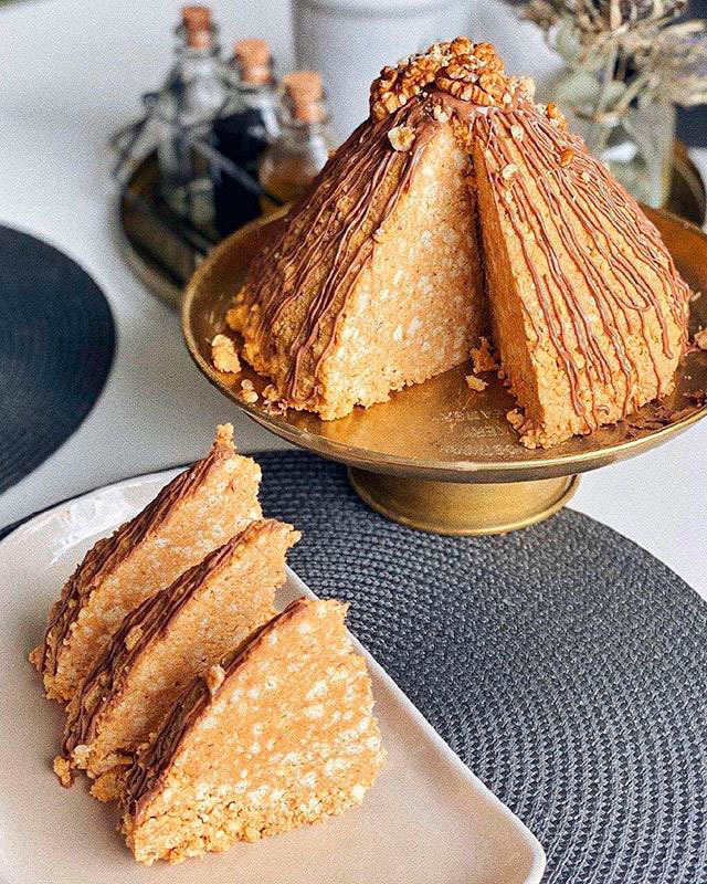 2. Добавьте тесто, поломанное на крошки, и сформируйте торт или порционные пирожные.